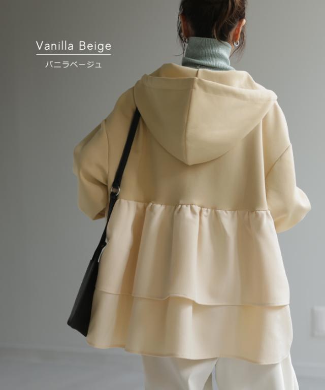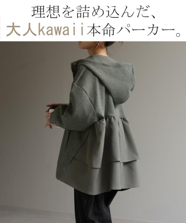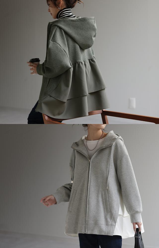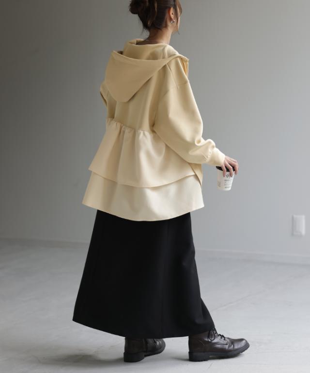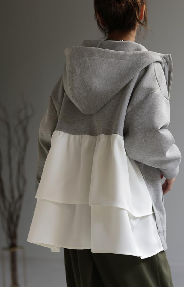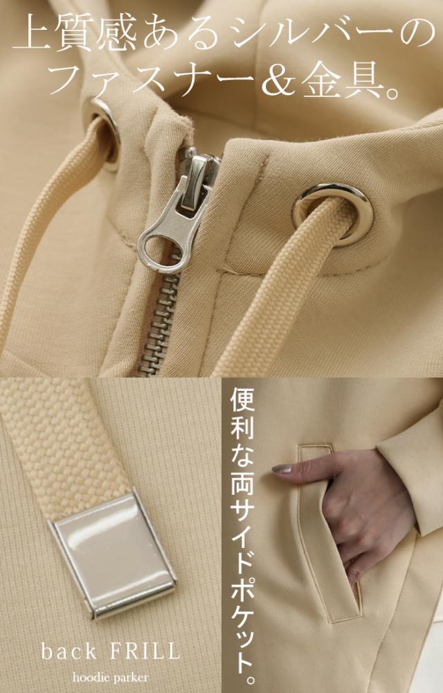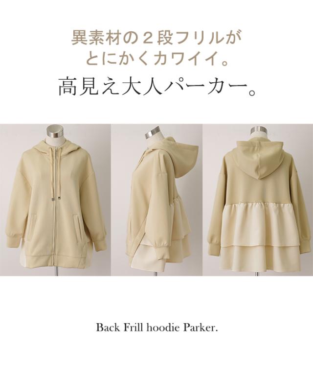 後姿に目を惹くバックフリルパーカーです。