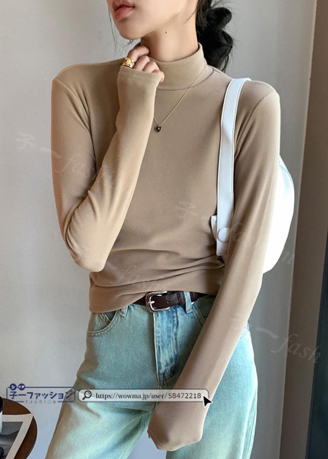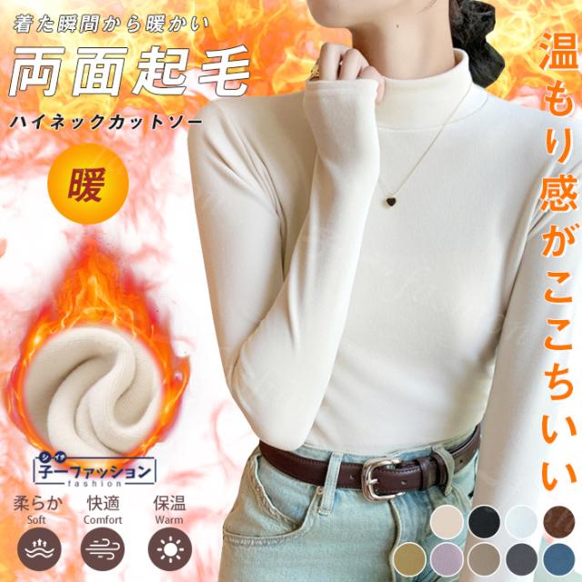 <1点1,850円!クーポン利用で>カットソー 裏起毛 両面起毛カットソー 冬新作 レディース ハイネック 発熱 肌着 長袖 春 秋冬 柔らか 無地 あったか 暖かい 防寒 無地 肌着 保温 無地 伸縮性 ストレッチ着痩せ 大人 学生 通勤 通学 インナー
