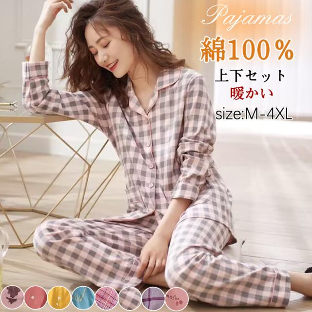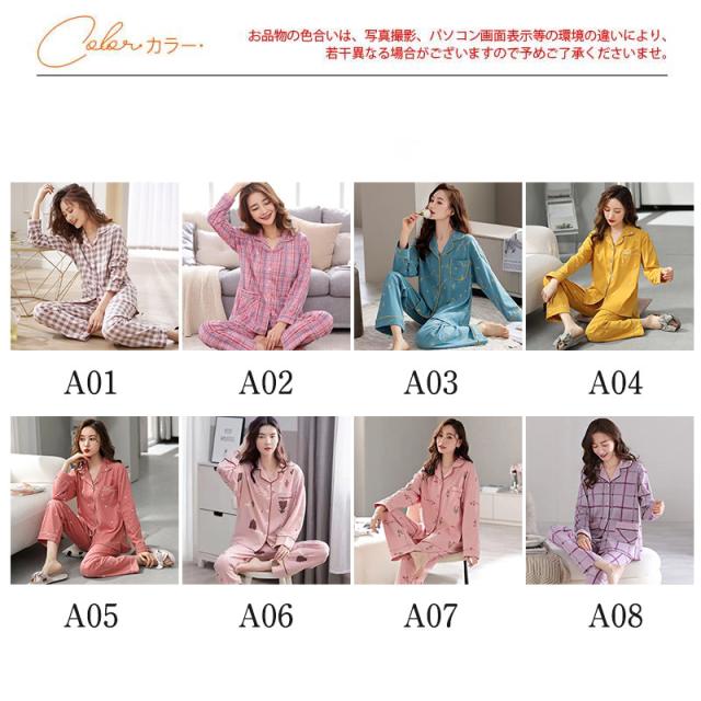 パジャマ レディース 綿100% 上下セット ルームウェア 長袖 シャツ ロングパンツ 部屋着 寝間着 前開き 寝巻き ナイトウエ