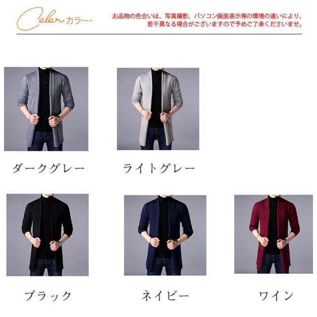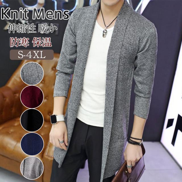 カーディガン メンズ ニット セーター 羽織り ロング丈 前開き アウター トップス ルームウェア 着痩せ カジュアル 防寒 オフ