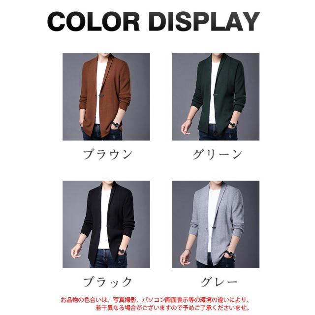 カーディガン メンズ ニットカーディガン 折り襟 セーター 前開き 秋冬 薄手 トップス ルームウェア 着痩せ 防寒 オフィス 肩