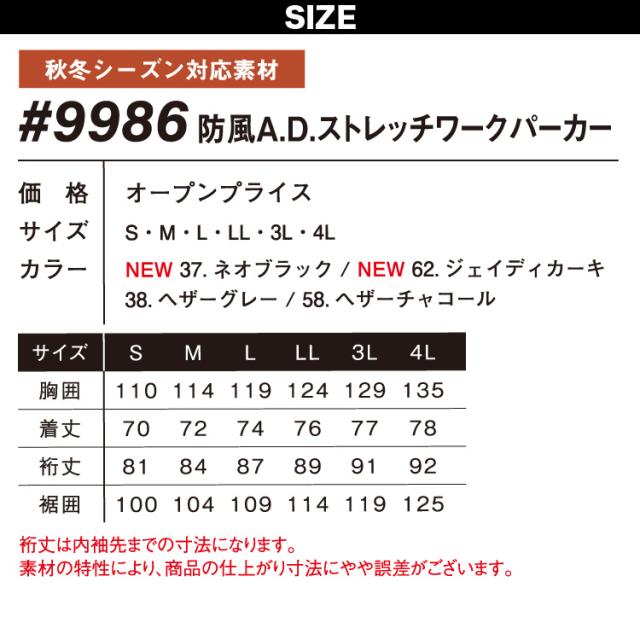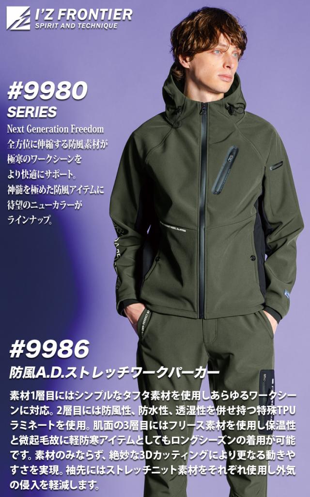 アイズフロンティア 防風A.D.ストレッチワークパーカー 9986 防風 軽防寒 作業服 作業着 秋冬 かっこいい おしゃれ I’Z FRONTIER