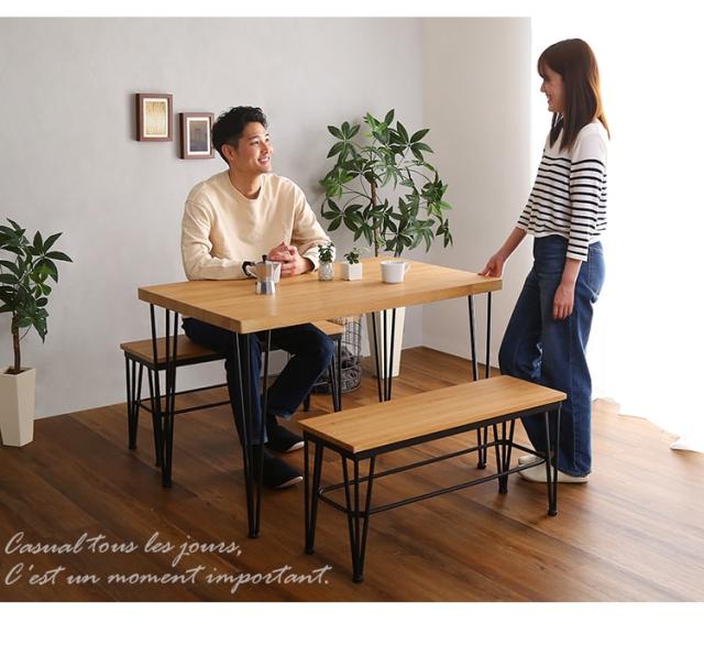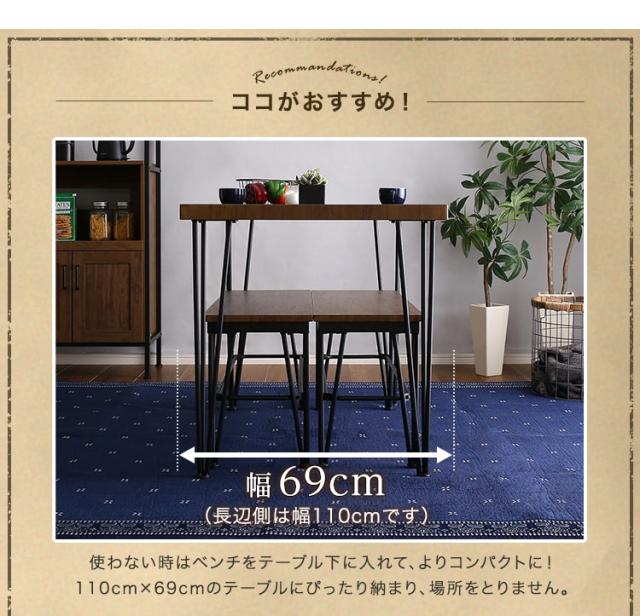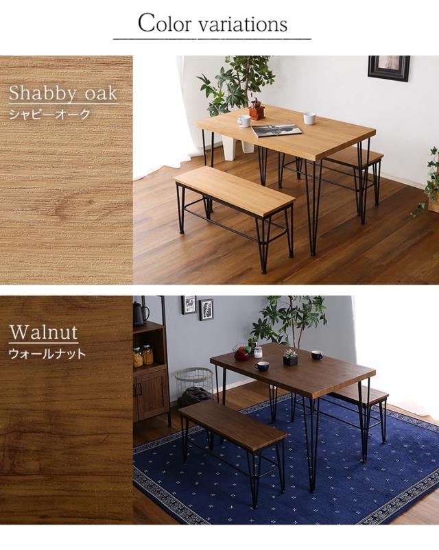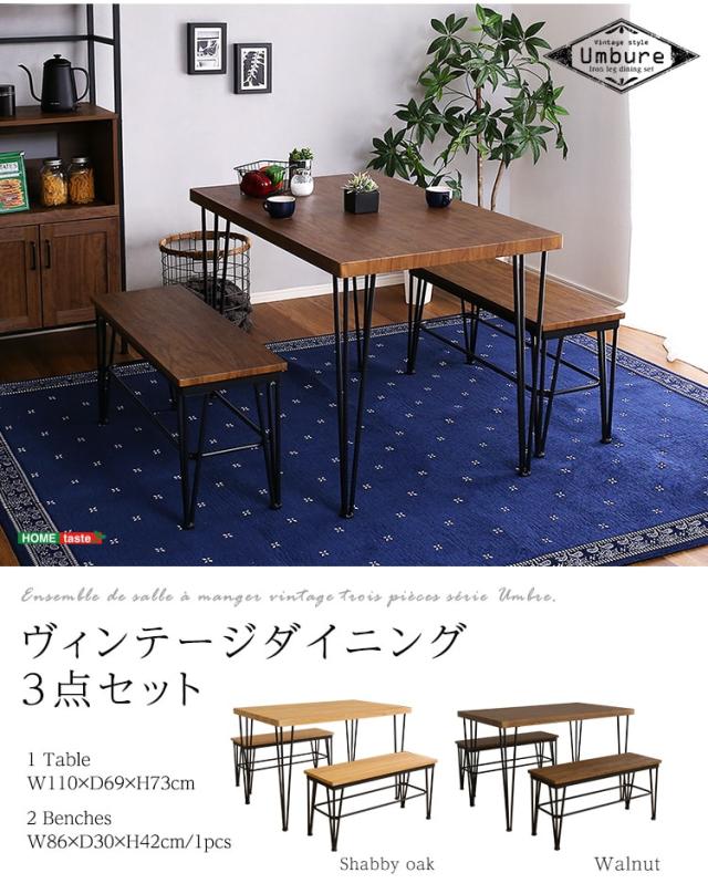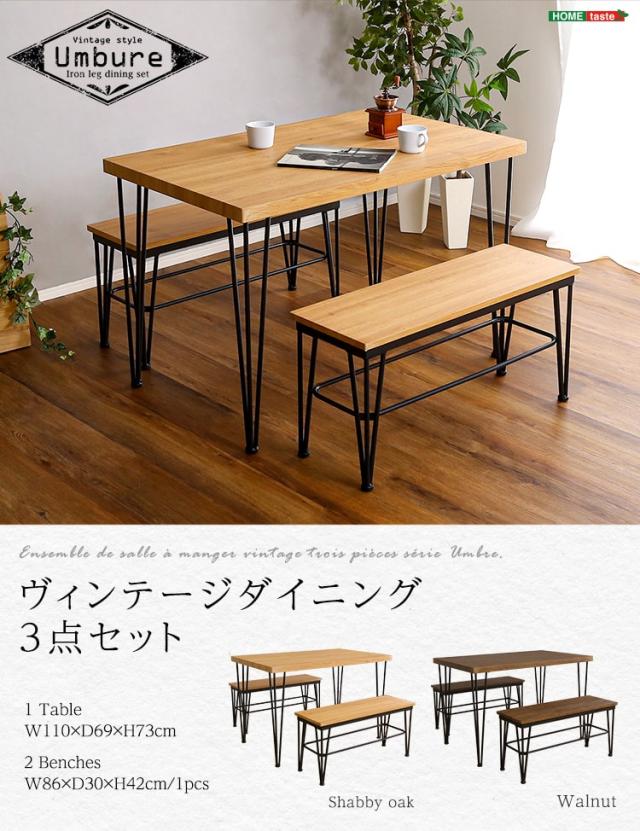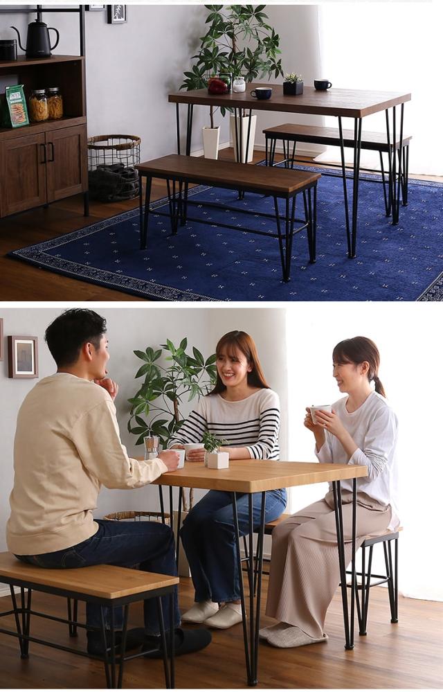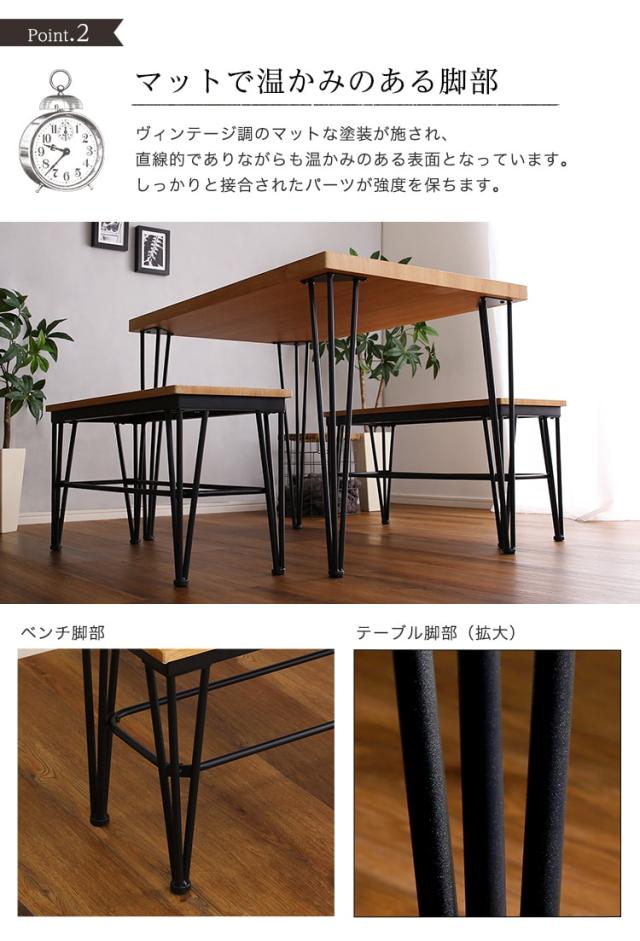 ヴィンテージ ダイニング 3点セット テーブル+ベンチ2脚 ダイニングテーブルセット テーブル ベンチ 4人掛け スチール脚 コンパクト 木目 カフェ 食卓テーブル 家族 モダン 新生活 引越し 家具 北海道送料別途 沖縄 離島別途送料見積もり VDBB-3