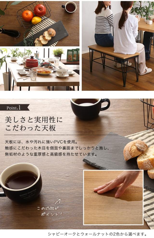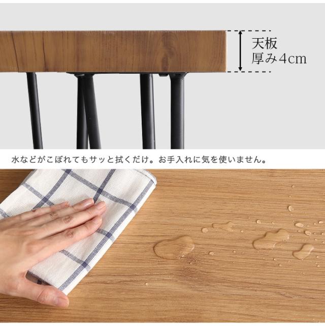 しっかりとした厚み4cmのある天板は高級感のあるシャビーオーク、ウォールナット柄を側面、裏面にも施し食卓を上品に演出します。
