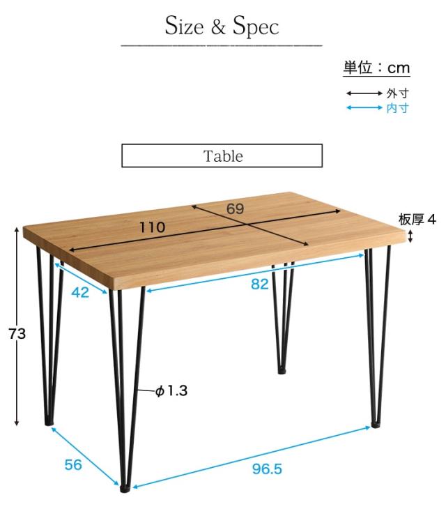 テーブル:約W110xD69xH73cm
