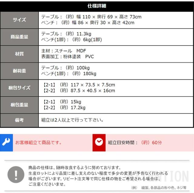 お客様組み立て品:組み立て時間60分