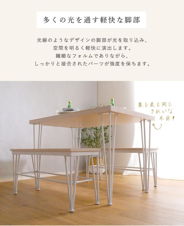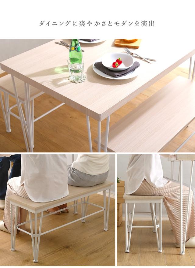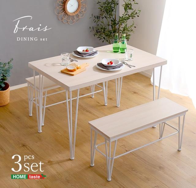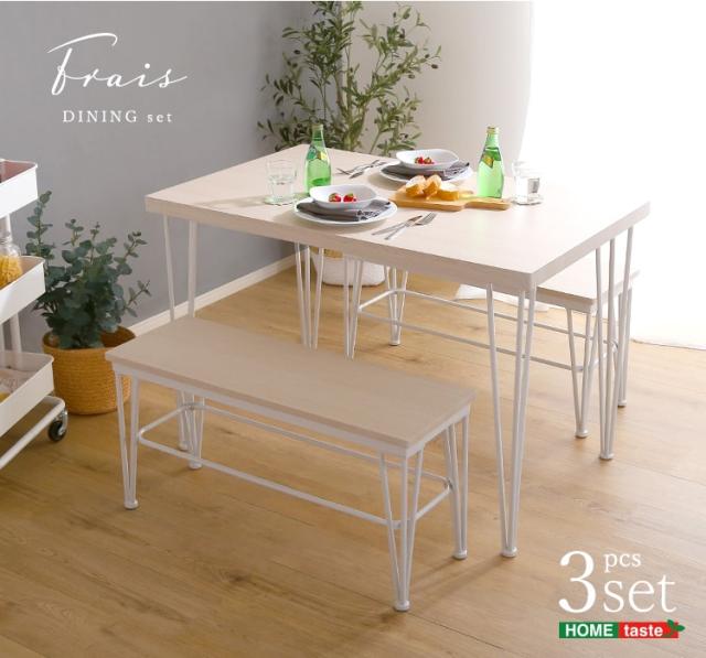 さわやかな ダイニング3点セット テーブル+ベンチ2脚 ダイニングテーブル さわやか ホワイト アイアン テーブル ベンチ 4人掛け 新生活 引越し 家具 北海道送料別途 沖縄 離島別途送料見積もり FRBB-3