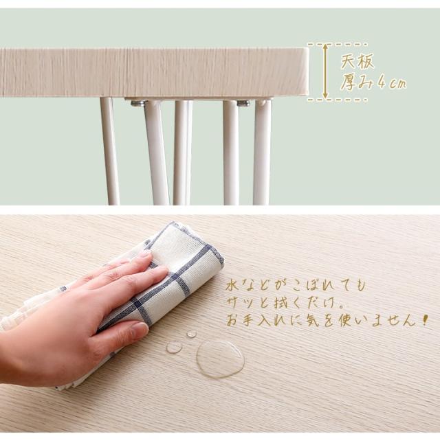しっかりとした厚み4cmのある天板は高級感のあるホワイトオーク柄を側面、裏面にも施し食卓を上品に演出します。