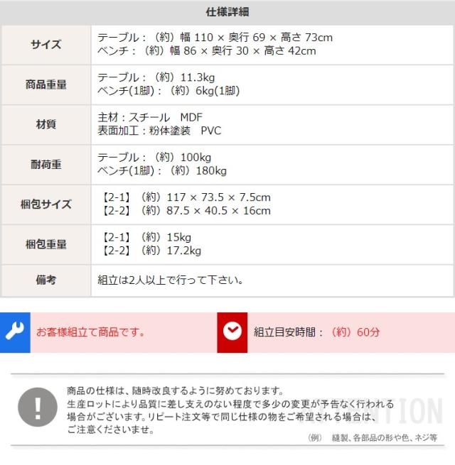 【商品サイズ】テーブル:約W110xD69xH73cm