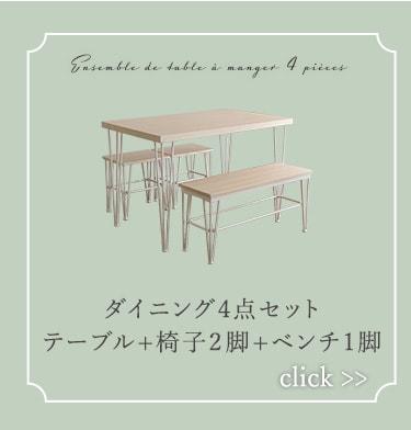 さわやかなダイニング3点セット【テーブル+ベンチ2脚】!