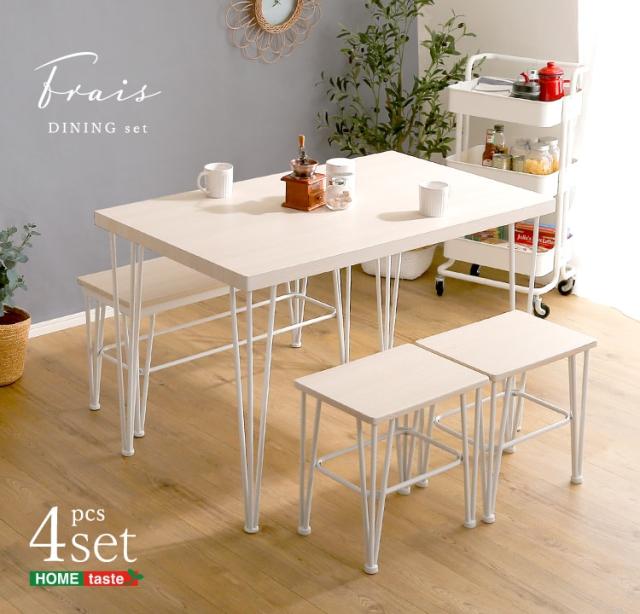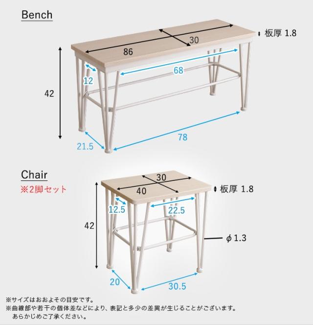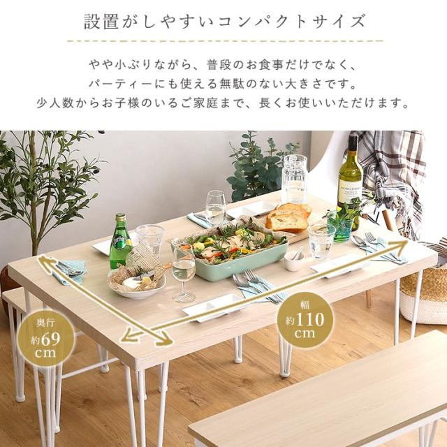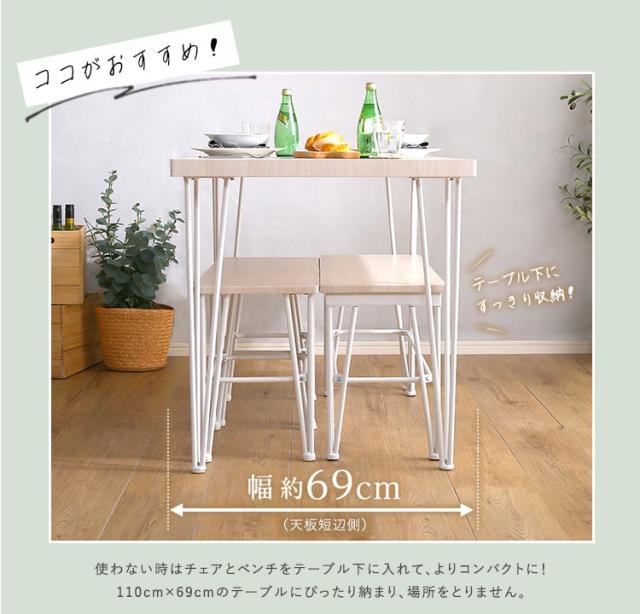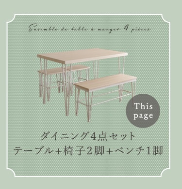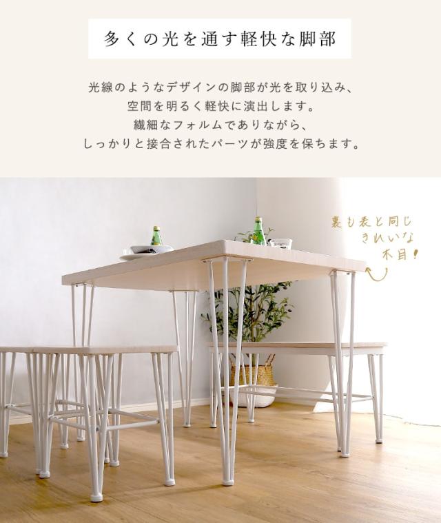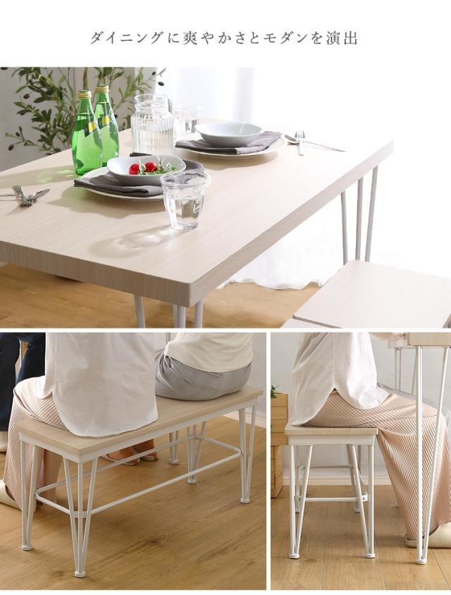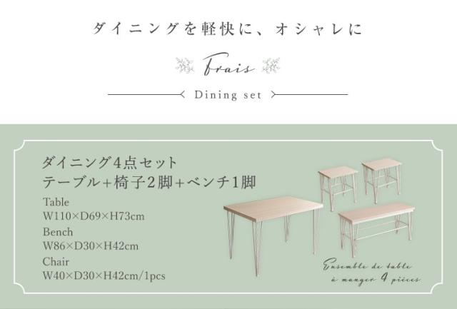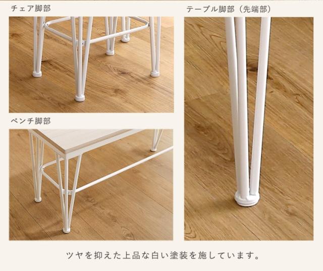 さわやかな ダイニング 4点セット テーブル+椅子2脚+ベンチ1脚 ダイニングテーブル さわやか ホワイト アイアン テーブル チェア ベンチ 4人掛け 新生活 引越し 家具 北海道送料別途 沖縄 離島別途送料見積もり FRCB-4
