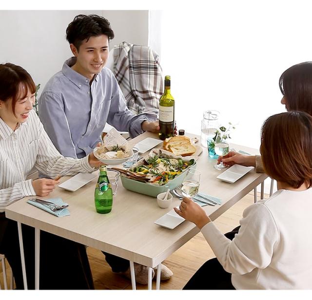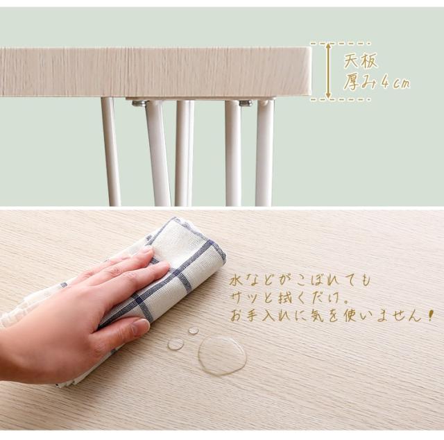 しっかりとした厚み4cmのある天板は高級感のあるホワイトオーク柄を側面、裏面にも施し食卓を上品に演出。