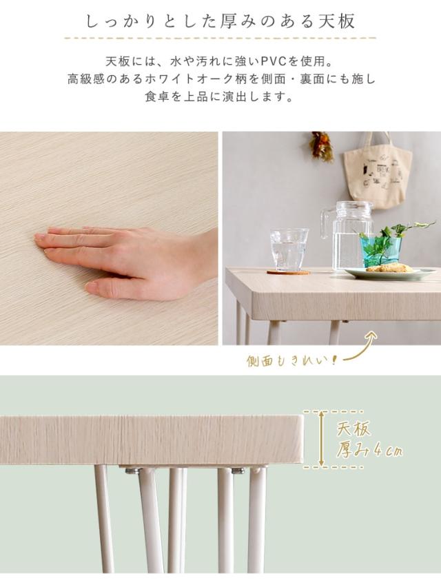 しっかりとした厚み4cmのある天板は高級感のあるホワイトオーク柄を側面、裏面にも施し食卓を上品に演出します。