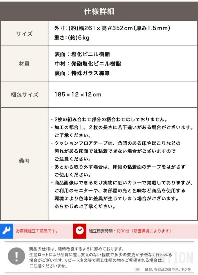 ・ジョイント用テープですが、凸凹のある床や汚れのある床(ほこりなど)では粘着できなくなる場合がございますのでご注意ください。