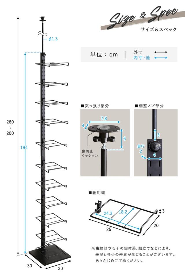 ディスプレイ 突っ張り シューズラック 突っ張り スニーカー 革靴 ディスプレイラック 11段 隙間収納 玄関 収納 おしゃれ ハイカット ローカット 見せる収納 新生活 引越し 家具 北海道送料別途 沖縄 離島別途送料見積もり PPSS