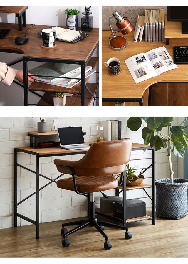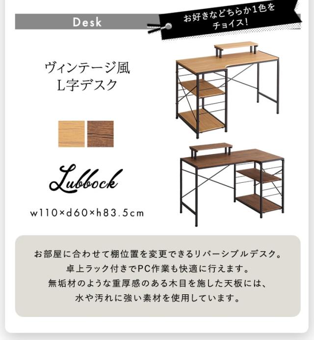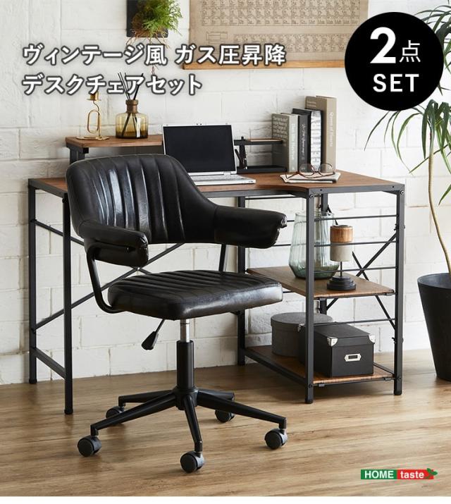 ヴィンテージテイストのL字デスクとガス圧昇降式チェアセット!