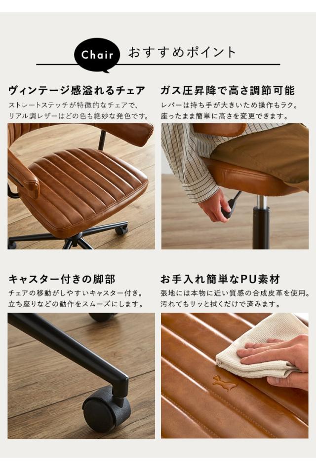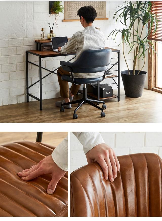 風合いのあるカラーPU生地が落ち着いた印象を醸し出し、ヴィンテージ調のデスクとマッチします。