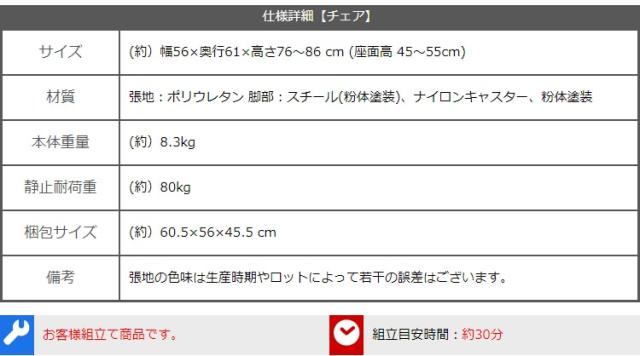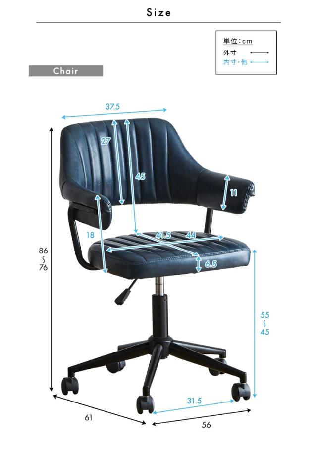 【商品サイズ】チェア:W56xD61xH76〜86(SH45〜55)cm