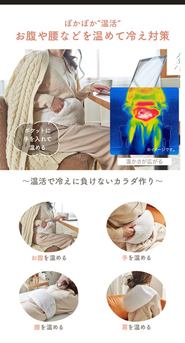 コードレスなので、就寝時やリビングでのリラックスタイム、デスクワーク時など、お腹・膝・腰など温めたい箇所を好きな場所で温められます。