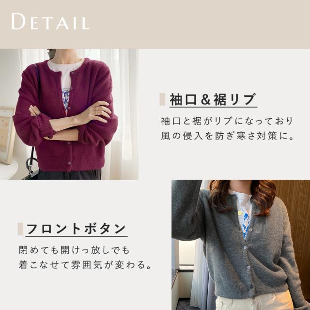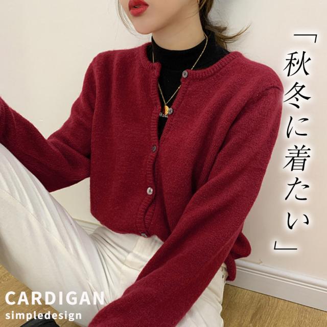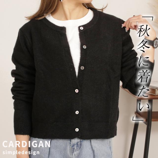 カーディガン ニット生地 レディース トップス ミディアム丈 中厚手 長袖 前開き 羽織り リブニット あったか 無地 可愛い お洒落 キレカジ オフィス レトロ シンプル ガーリー カジュアル エレガント 大人 秋 冬 黒 白