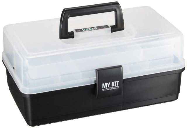◆商品名:アイリスオーヤマ ツールボックス 工具箱 収納ケース 幅32.5cm×奥行19cm×高さ15cm ブラック<br>多目的に使える万能ケースです。フタの開閉に連動する2段式トレーが付いていて収納力に優れています。