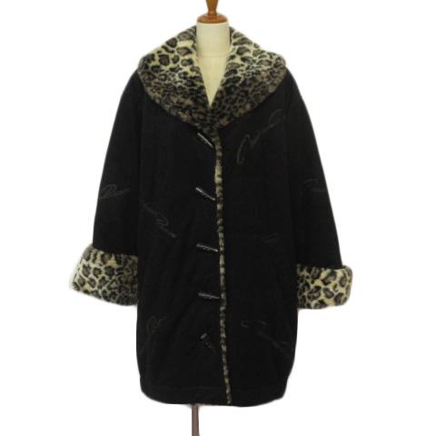 【中古】マダムビーン 伊万里 コート 中綿 トグルボタン ヒョウ柄 レオパード M 黒 ブラック レディース