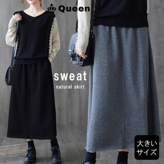 ★☆大きいサイズ ポンチスカート スウェットスカート ロング 無地 秋冬 レディース 春 LL 3L 4L 5L 6L ブラック グレー☆★