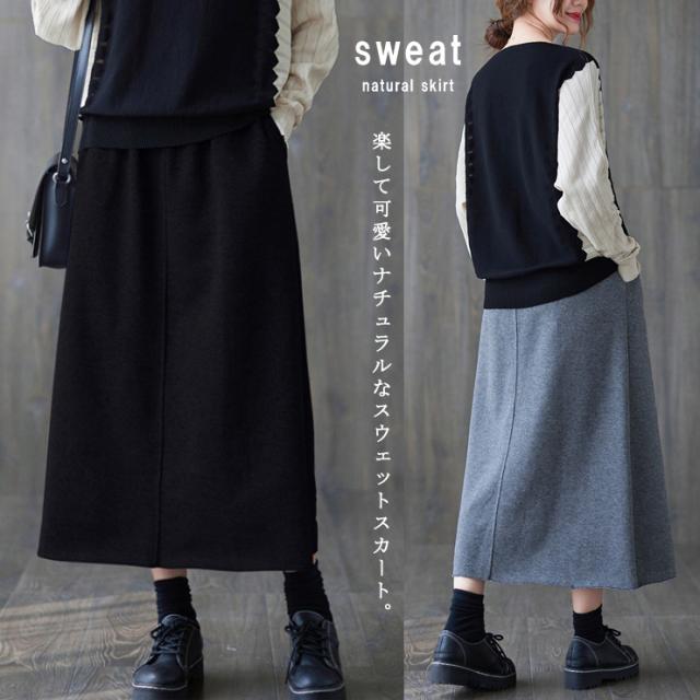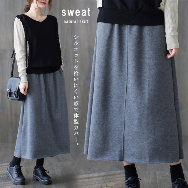 大きいサイズ ポンチスカート スウェットスカート ロング 無地 秋冬 レディース 春 (dm9181)