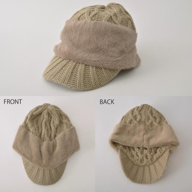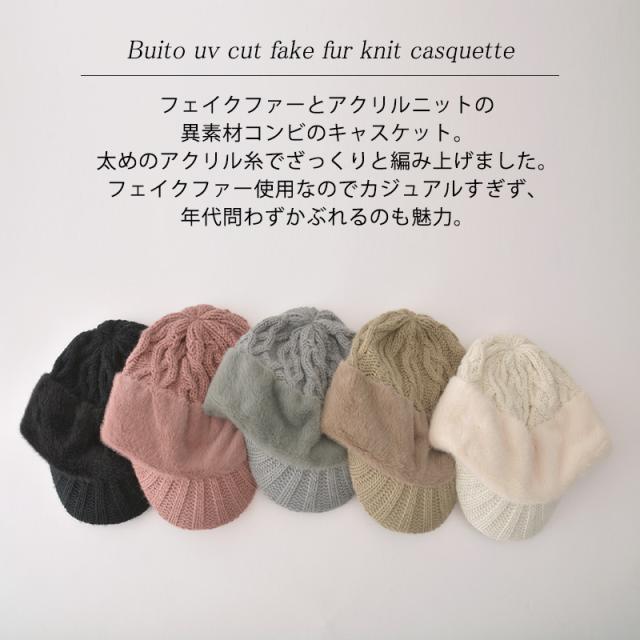メンズ レディース 秋 冬 秋冬 冬用 帽子 つば付きニット帽 つば付ニット帽 つば付き ニット帽 | ブイート UVカット フェイクファー ニットキャスケット ca-bit
