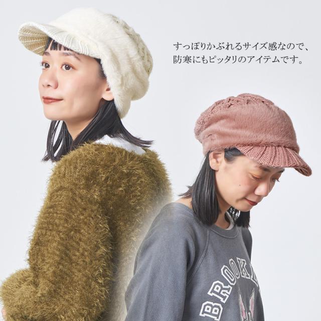 フェイクファーとアクリルニットの異素材コンビのキャスケット。