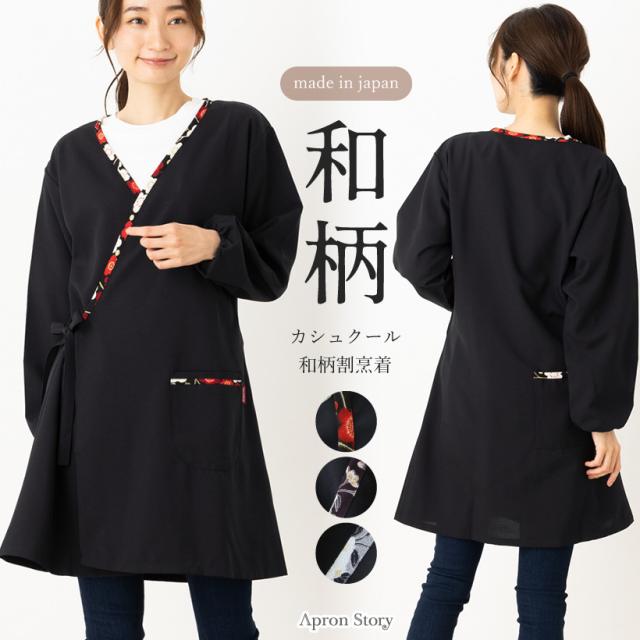 【メール便1枚のみ送料無料】和柄カシュクール風かっぽう着 前開き 和モダン 日本製 割烹着 エプロン おしゃれ プレゼント ギフト 母の日【N】【M】