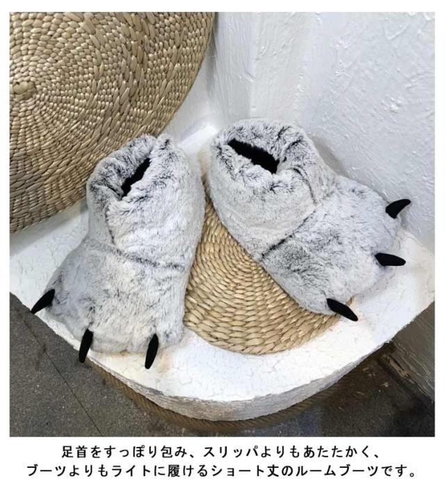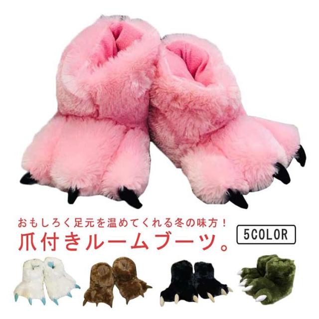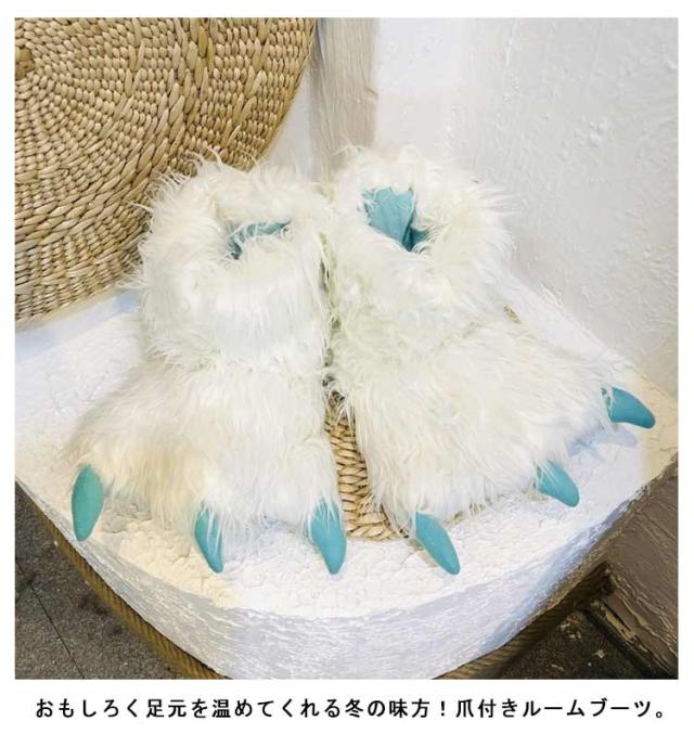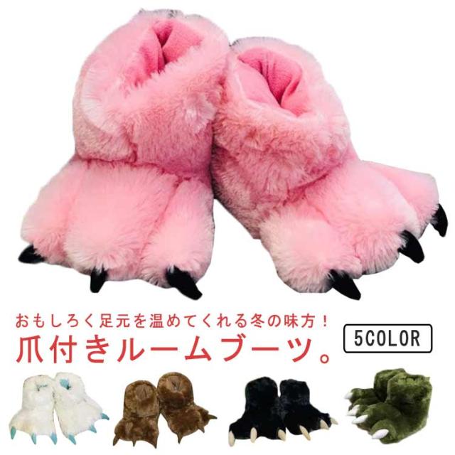 ルームシューズ もこもこ 爪付き スリッパ かかと付き 冬 冬用 動物 アニマル 爪 スリッパ ブーツ型 かわいい おもしろ ルームブーツ あったか 防寒 保温 ふわふわ ファー 足元 暖かい 室内履き 軽量 滑り止め レディース メンズ 【送無】