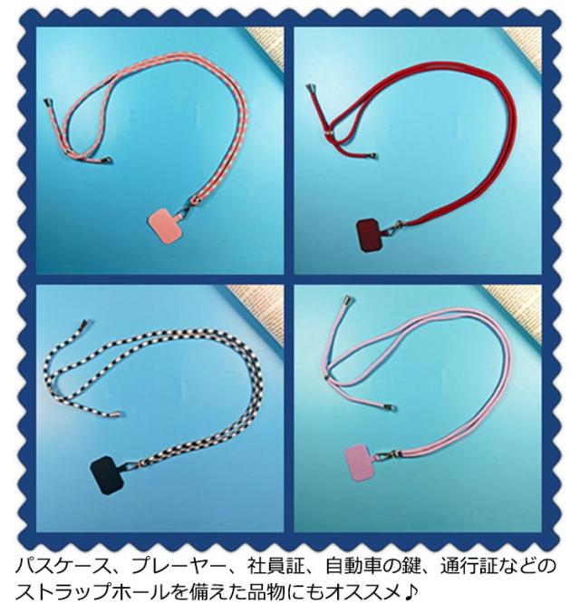 | 全32色 スマホに挟むだけで手軽に肩掛けができるストラップ スマートフォンの機種を問わず、スマホケースの充電ホールに対応する仕様で、マルチに使える パスケース、プレーヤー、社員証、自動車の鍵、通行証などのストラップホールを備えた品物にもオススメ♪ | |