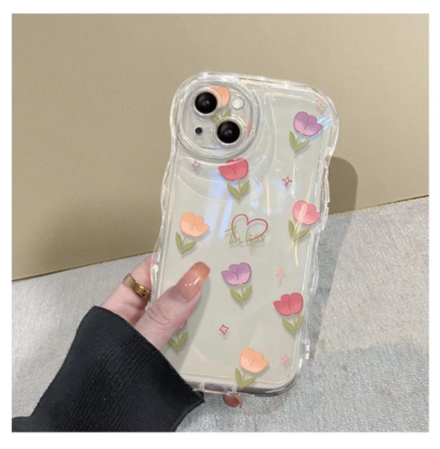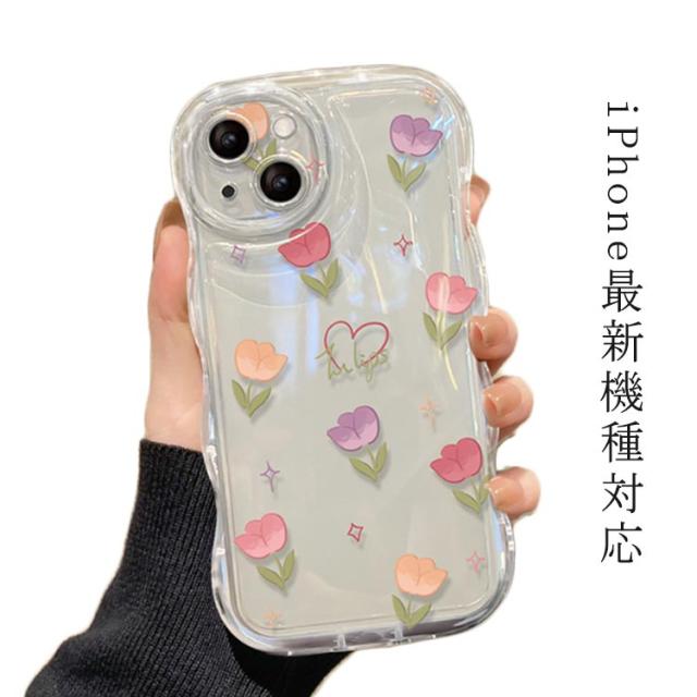 iPhone15 ケース iPhone15Pro ケース iPhone14 ケース iPhone15 ケース iPhone14 pro promax iPhone13 韓国 おしゃれ 可愛い かわいい ケース ハート 心 花 柄 フラワー 耐衝撃 ウエーブ クリアケース なみなみ うねうね 透明 送料無料