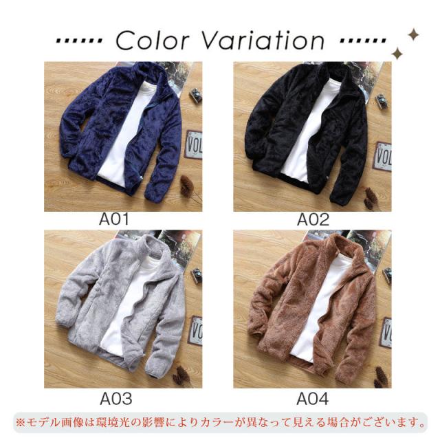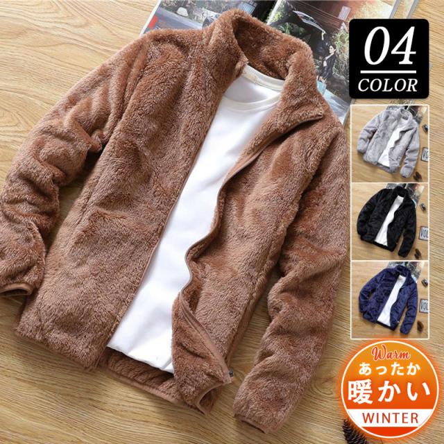 フリースジャケット メンズ ボアジャケット 防寒 無地 あったか ジャンパー ブルゾン アウター おしゃれ アウトドア 保温 暖