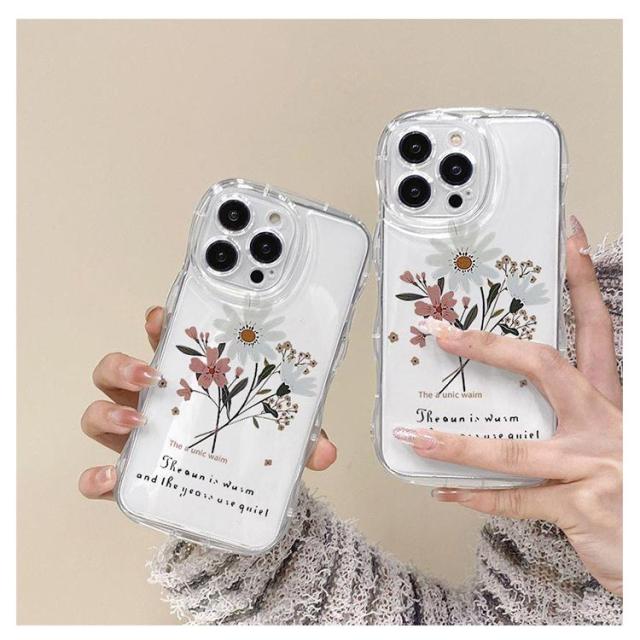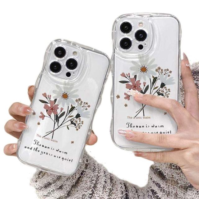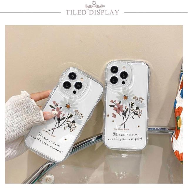 iPhone15 ケース iPhone15Pro ケース iPhone14 ケース iPhone15 ケース iPhone14 pro promax iPhone13 韓国 おしゃれ 可愛い かわいい ケース 菊 デイジー 花 フラワー 耐衝撃 ウエーブ クリアケース なみなみ うねうね 透明 送料無料