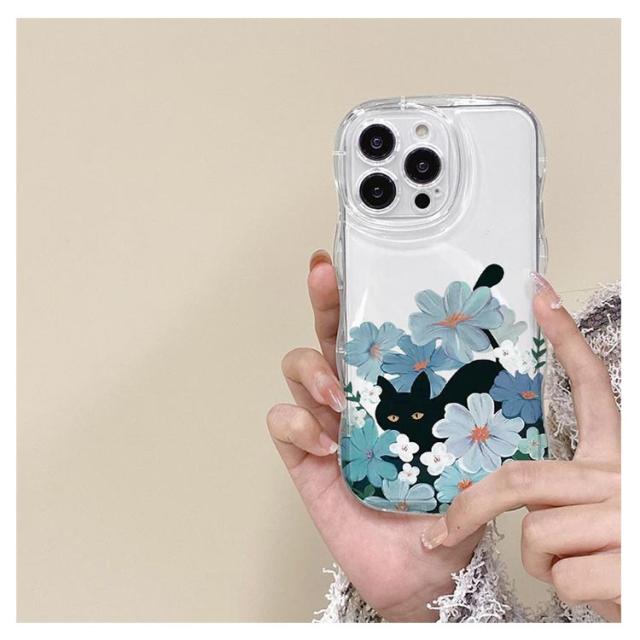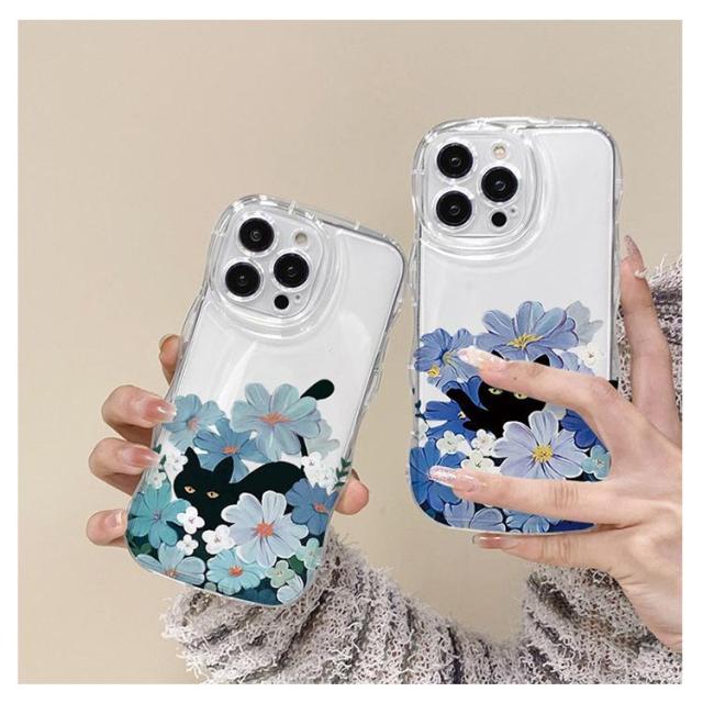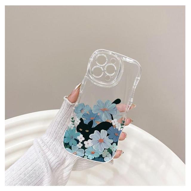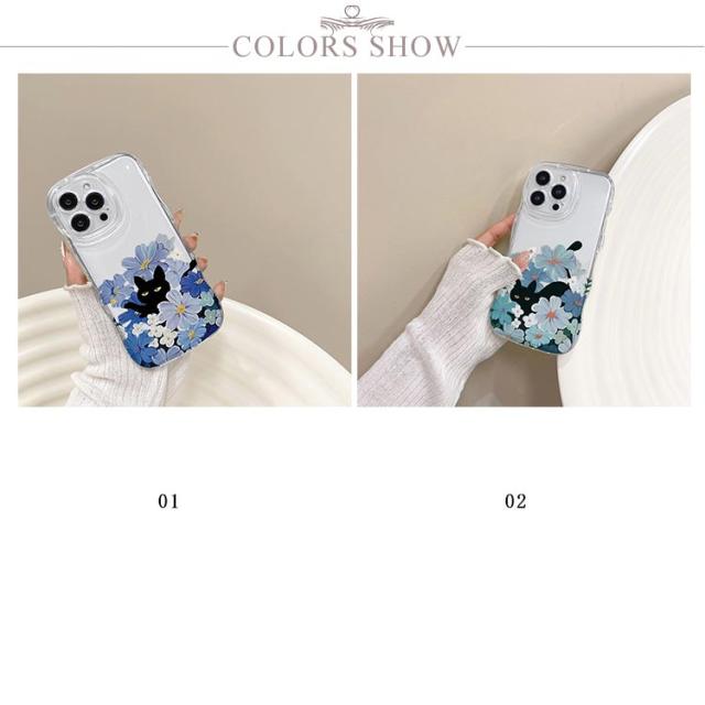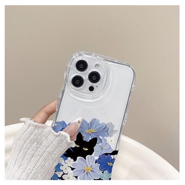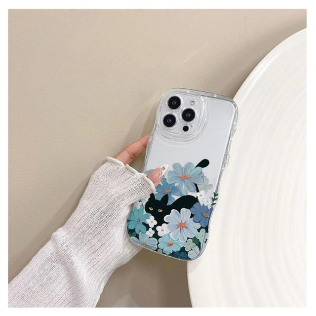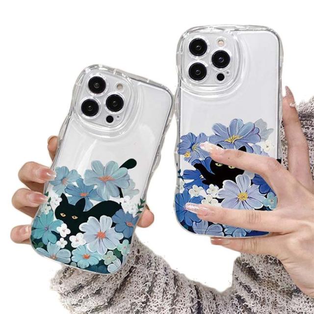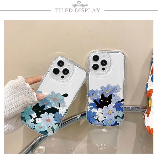 iPhone15 ケース iPhone15Pro ケース iPhone14 ケース iPhone15 ケース iPhone14 pro promax iPhone13 韓国 おしゃれ 可愛い かわいい ケース 猫 猫ちゃん ネコ 花 フラワー 耐衝撃 ウエーブ クリアケース なみなみ うねうね 透明 送料無料
