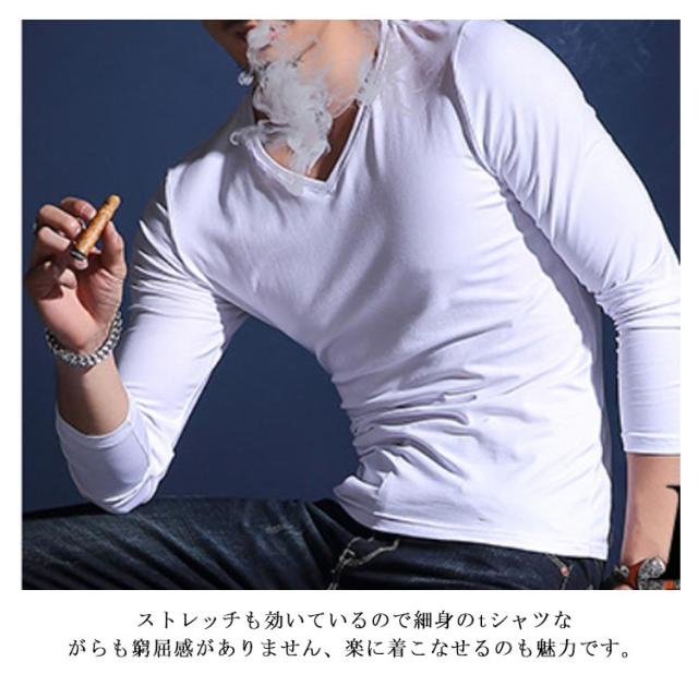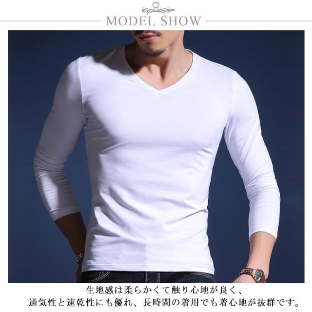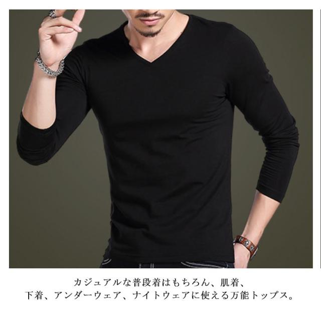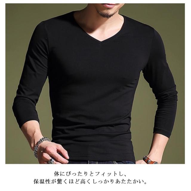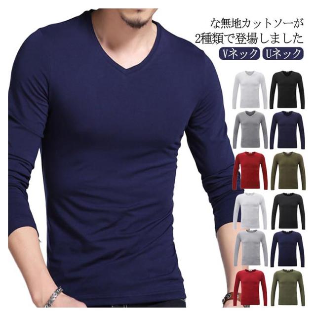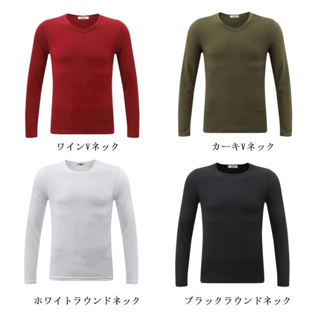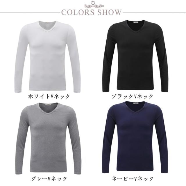 送料無料 肌着 アンダーシャツ インナー tシャツ カットソー 長袖 メンズ Vネック Uネック 無地 スリム 細身 大きいサイズ S-6L 春 秋 冬