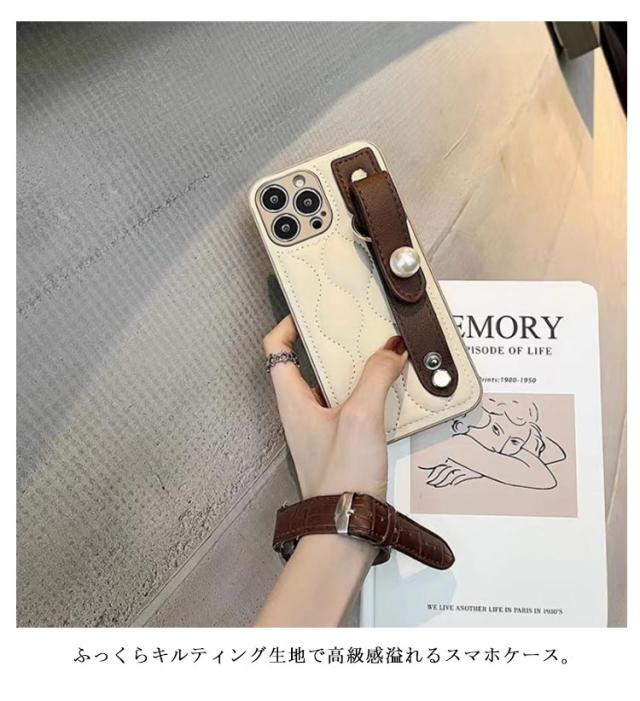 iPhone15 ケース 落下防止 ベルト付き キルティングケース 耐衝撃 キルティング スマホケース iPhoneケース キルティング ケース バンド付き 衝撃保護 スマホカバー iPhone15Pro iPhone15ProMax ケース