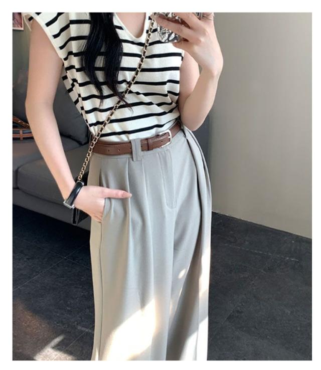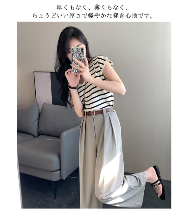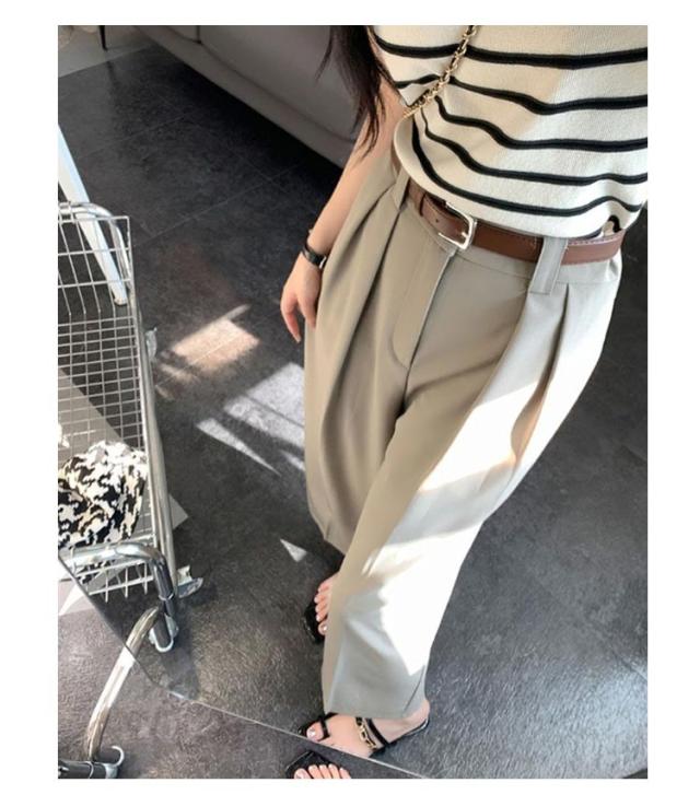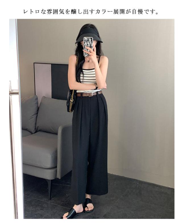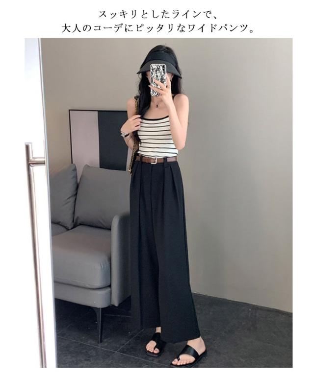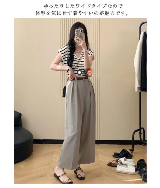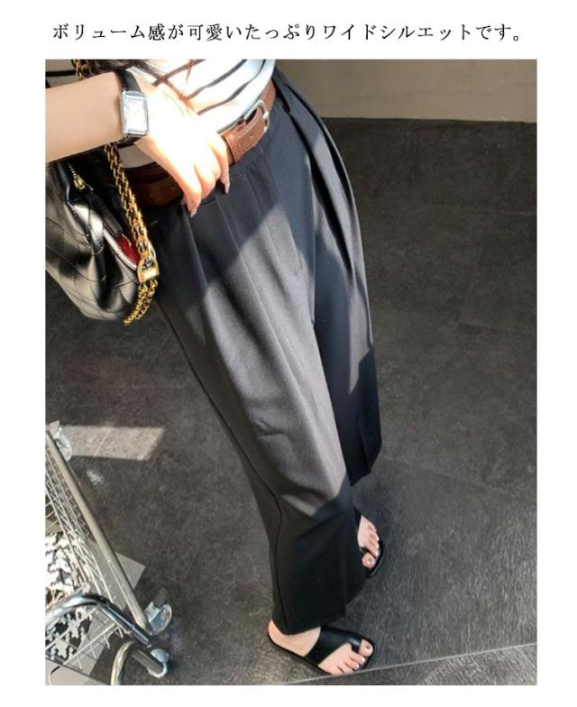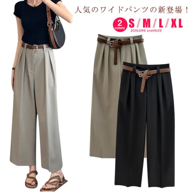 ベルト付 ワイドパンツ レディース ハイウエスト スラックス ロングパンツ ゆったり 体型カバー タック 落ち感 春 夏 秋 韓国ファッション 通勤 オフィス OL 送料無料