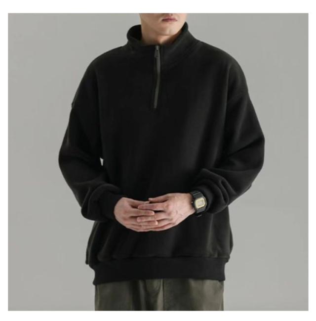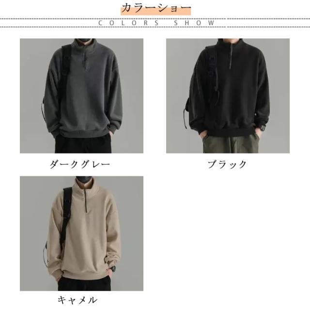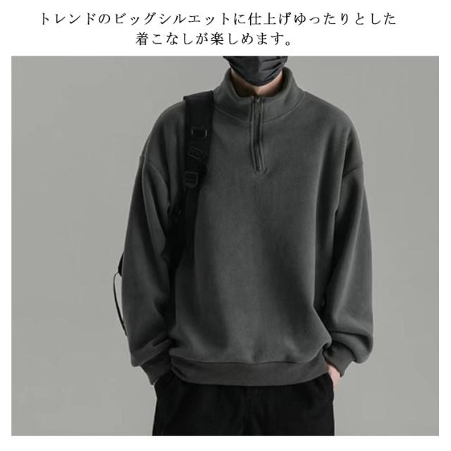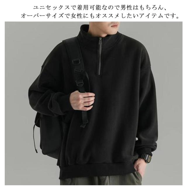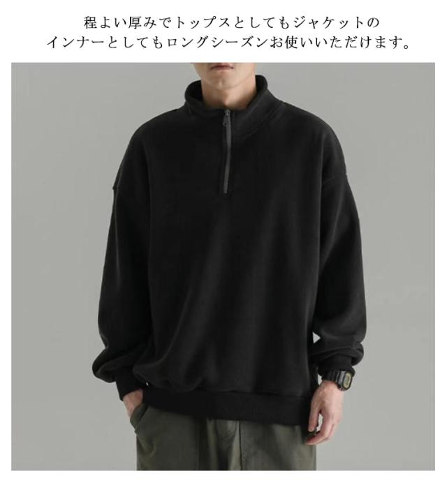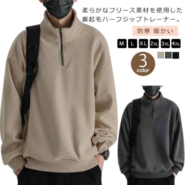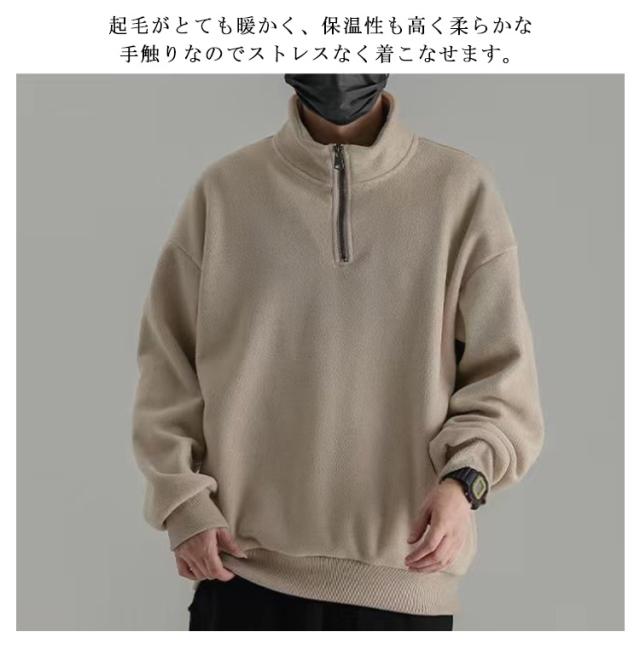 ハーフジップ プルオーバー メンズ スウェット フリース 裏起毛 トレーナー スタンドカラー トップス カットソー ハイネック 防寒 暖かい アウトドア オシャレ ストリート系 韓国ファッション 秋冬