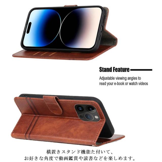 | 手帳型ケースiphone15 ケースが登場。 表面生地が硬すぎず、やわすぎず、ちょっと良い手触りです。 横置きスタンド機能た付いて、お好きな角度で動画鑑賞や読書などを楽しめます。 ケースの裏側にカードポケット3つ, お札入れポケット一つ、名刺や定期券の収納に優れていて、 ちょっととしたお出かけてもこれで十分です。 | |