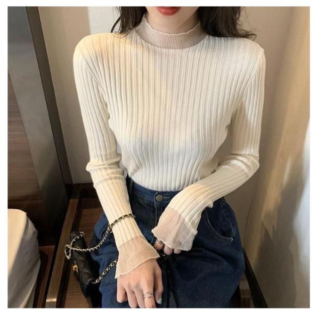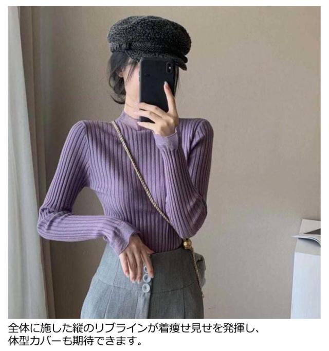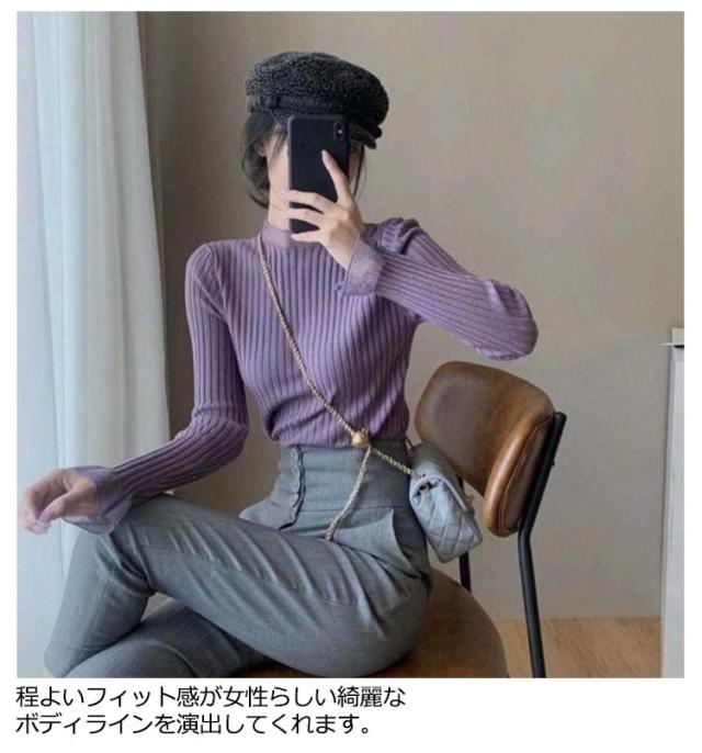畦フリル リブニット フリル ハイネック プルオーバー セーター レディース フリルハイネックリブニット 細ボーダー Tシャツ 長袖 カットソー タートルネック ふわふわ 厚手 ざっくり 冬 ニットセーター 送料無料 ベージュ ブラック ブラウン