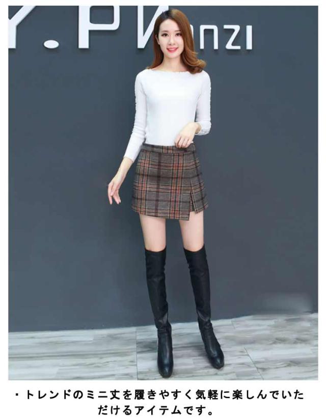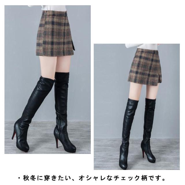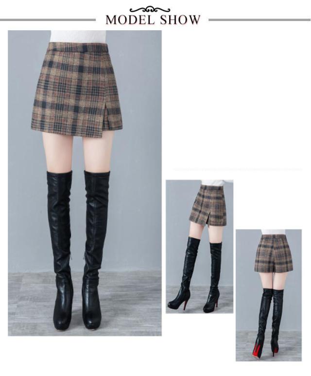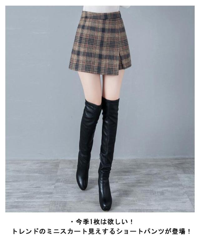 スカートショートパンツ レディース ショートパンツ ボトムス ミニスカート ミニスカ チェック柄 スカパン キュロット ウール調 Aライン ハイウェスト 台形 ショート丈 きれいめ カジュアル 大人 秋 冬