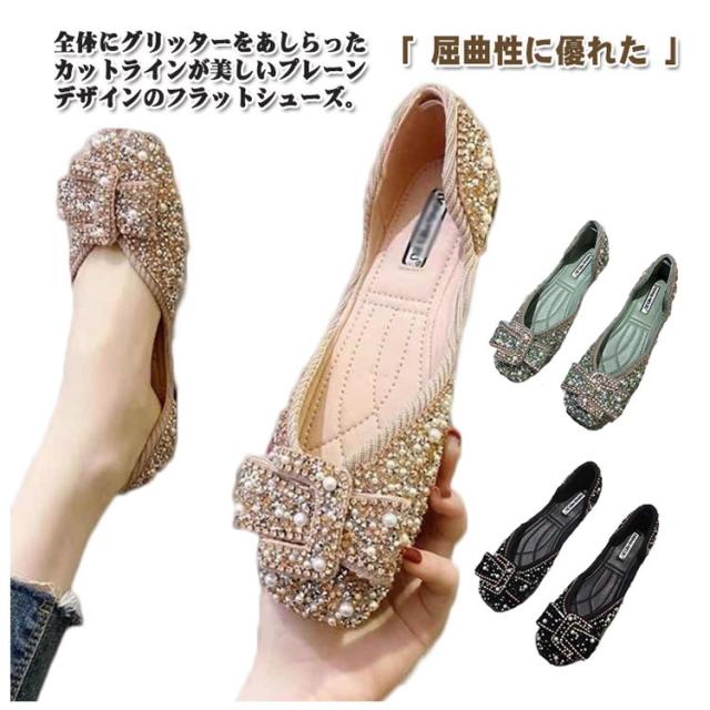 パンプス レディース ローヒール キラキラ レディースシューズ パンプス フラットシューズ サマー 靴 美脚 シューズ 婦人靴 春夏新作 通勤 痛くない 結婚式 脱げない 歩きやすい フォーマル スクエアトゥ 送料無料 2023新作