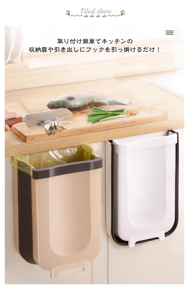 | 穴あけ不要、簡単設置、実用的な折り畳み式壁掛けゴごみ箱です 取り付け簡単でキッチンの収納扉や引き出しにフックを引っ掛けるだけ! 折りたたみ式なので展開して大容量に! 足がついているので床に置いての使用も可能! シンプルなデザイン、設計なので使用する場所を選びません。 キッチンだけでなく洗面所や車など様々なシーンで大活躍! | |