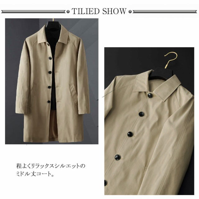 | 『トレンドに左右されないコート』【M-5XL】【裏地付き】 程よくリラックスシルエットのミドル丈コート。 天然素材のようなナチュラルタッチなポリエステル素材を使用し、発色も良く肌触りも◎。 程よい厚みの生地感で、ロングシーズンで活躍してくれます。 滑りの良い裏地が施され、重ね着をしてもスムーズな着脱が可能です。 無駄な装飾のないシンプルなデザインで合わせるインナーを選ばない優秀な一着。 ビジネスシーンにも合わせやすいです。 | |