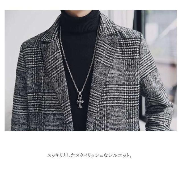 コート メンズ チェスターコート ロング チェック柄 メルトン スリム ロングコート 一つボタン 秋 冬 メルトンコート キルティング入り 中綿入り 厚手 暖かい 防寒 保温 通勤 通学 カジュアル 韓国 ファッション ストリート 大きいサイズ 【送無】