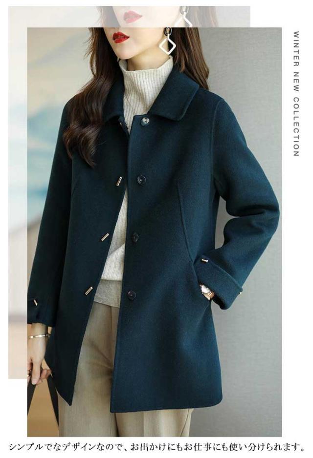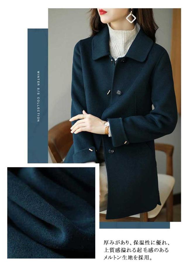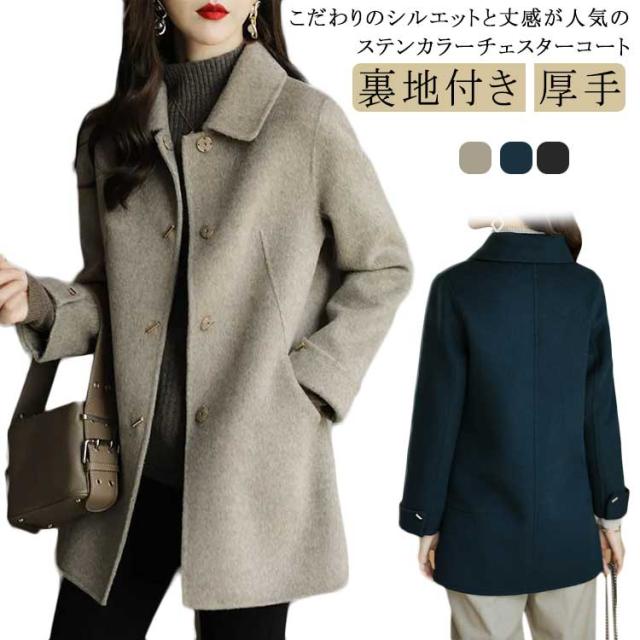 チェスターコート レディース 秋冬 コート ステンカラーコート ショート丈 スリム 厚手 メルトン コート 低身長 ショートコート 裏地付き あたっか 防寒 保温 通勤 通学 大人 きれいめ 韓国 ファッション 大きいサイズ 20代 30代 40代 50代 【送無】