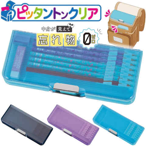ストア内の商品は全品送料無料です。ランドセルにぴったりで、たくさん入る!コンパクトなマグネット筆入「ピッタントン」から、表も裏も中身が見える「クリア」タイプが新登場!全3色からお選びください。芯材には、強化プラスチックを使用しているので丈夫!マグネット開閉の2ドアタイプで、授業で必要なもの全部入ります。オモテ側には、細めから太めの鉛筆、丸軸・三角軸・六角軸どのタイプの鉛筆にも対応している、7本差しホル...■メーカー: クツワ